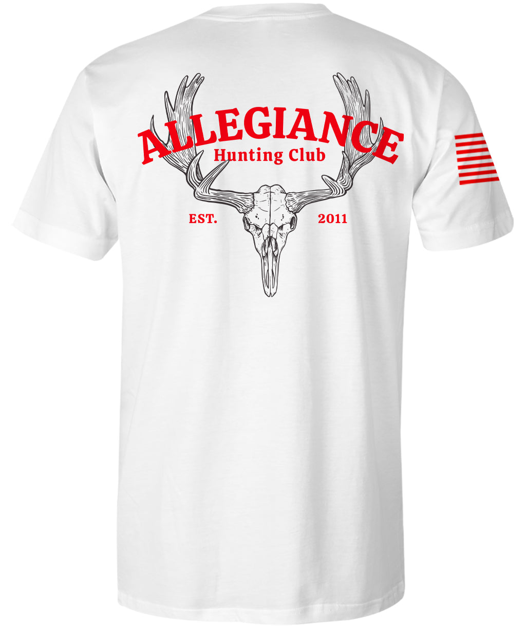 Honor the hunt with the Allegiance Hunting Club Graphic Tee. This rugged design features a bold deer skull with antlers, paired with the words “Allegiance” and “Hunting Club.” Beneath the artwork, “Est. 2011” gives a nod to the year we started—rooted in grit, tradition, and American values. To complete the look, the sleeve features a proud American flag print.