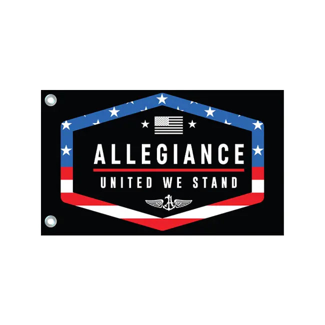 The Allegiance Clothing Republic Flag. Our flags are constructed from two pieces of high quality 210D polyester double stitched together for extra durability, a shade cloth in between, and two metal grommets. These flags are extremely durable and are perfect for outdoor or indoor use! Flags are all 18" X 30" . This flag is perfect to fly anyplace, anytime, anywhere! Show your Allegiance!