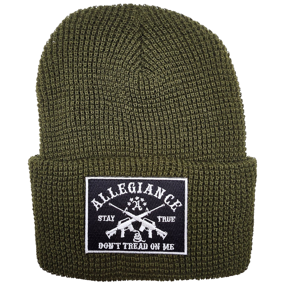 Stay warm while making a statement with the Allegiance Don’t Tread Beanie. Crafted from 100% acrylic, this beanie is designed for superior comfort, durability, and warmth, making it perfect for colder days or outdoor adventures. The embroidered "Don't Tread On Me" patch featuring crossed rifles and the Allegiance logo adds a bold touch of patriotism to this classic winter accessory. Whether you're on the move or just keeping cozy, the Don’t Tread Beanie combines functionality with standout style. Gear up for the season with the Don’t Tread Beanie—your go-to for warmth and allegiance.