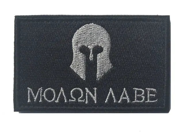 Allegiance Clothing's Molon Labe Velcro Patch. Dimensions 8X5cm.  Available in Black and Tan.