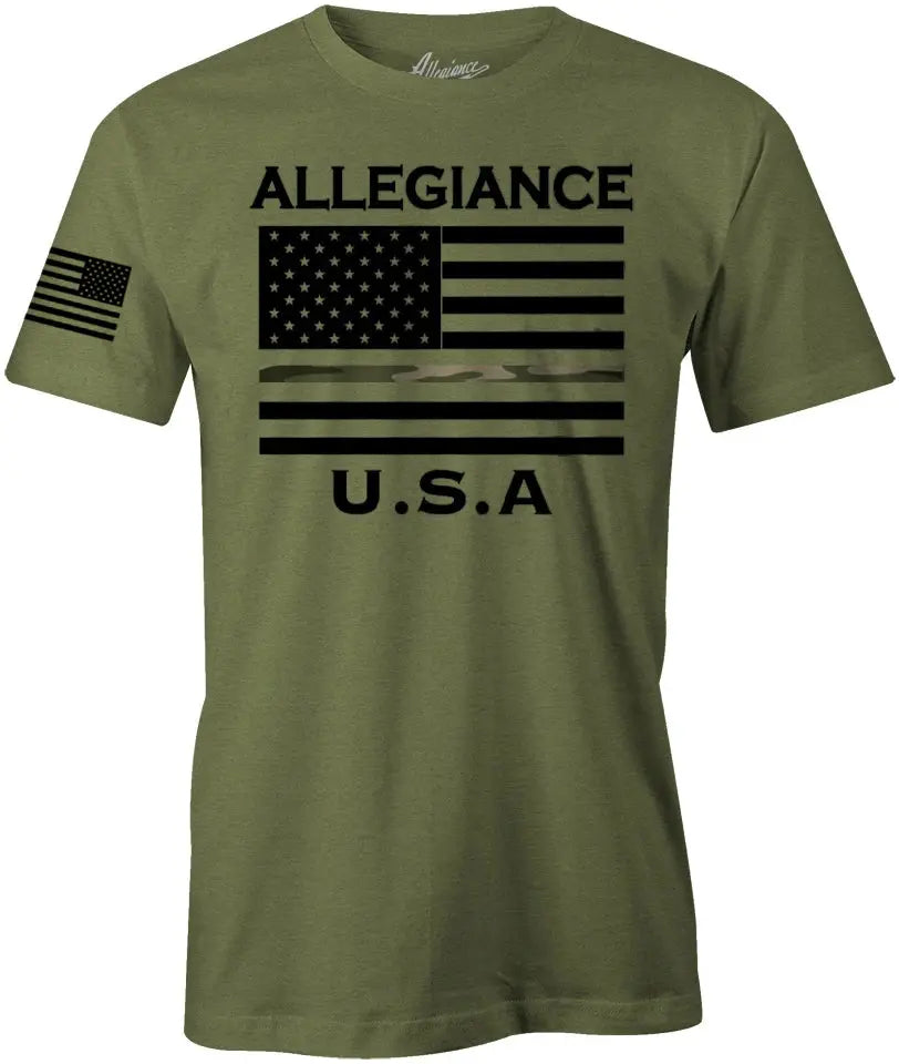 Looking for a stylish and patriotic way to show your support for the United States of America? Look no further than the Allegiance Clothing Camo Line Premium Tee! This comfortable and stylish tee features our Camo Line logo, which is a screen printed design of the United States of America flag filled in with a camo line. The shirt also features a large Camo Line Flag screen printed on the front, a small classic logo on the back shoulder, and an assaulting American Flag on the sleeve. This shirt is constructed of 60% combed ring-spun cotton and 40% polyester, making it comfortable to wear all day long. Plus, it's made in the USA! Show your pride in the United States of America with the Allegiance Clothing Camo Line Premium Tee.