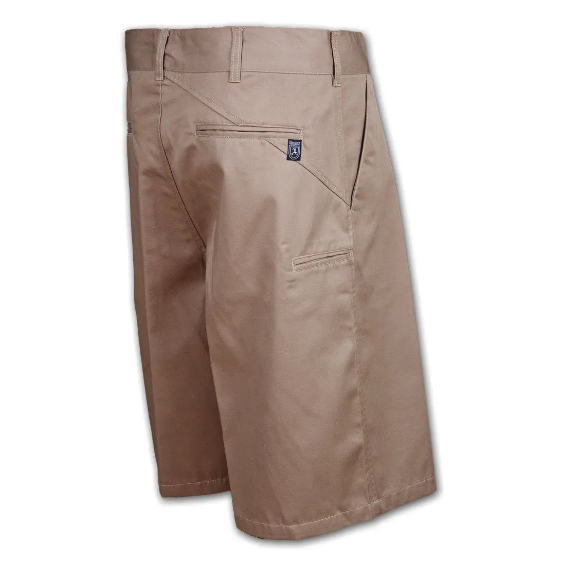 Constructed from 65% Polyester 35% Cotton these shorts are not only comfortable, but are build to last. These solid shorts are perfect for every occasion and they feature a side cell phone pocket, front left leg embroidery and tag on back pocket.