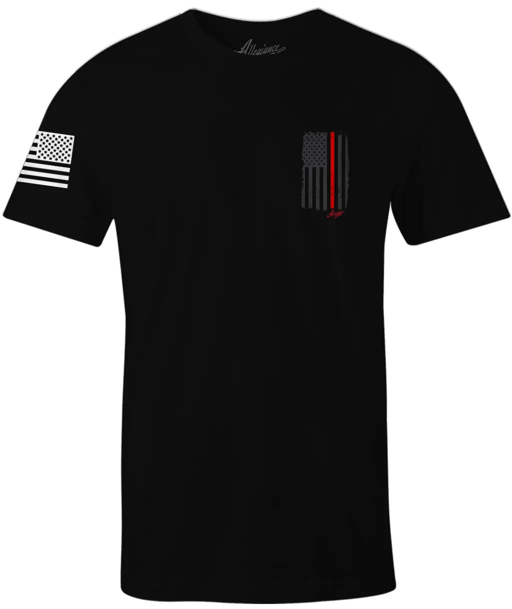 Small matching Thin Red Line flag graphic on the chest